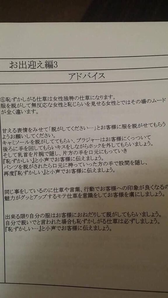 【悲報】風俗のマル秘接客マニュアルが流出してしまう
