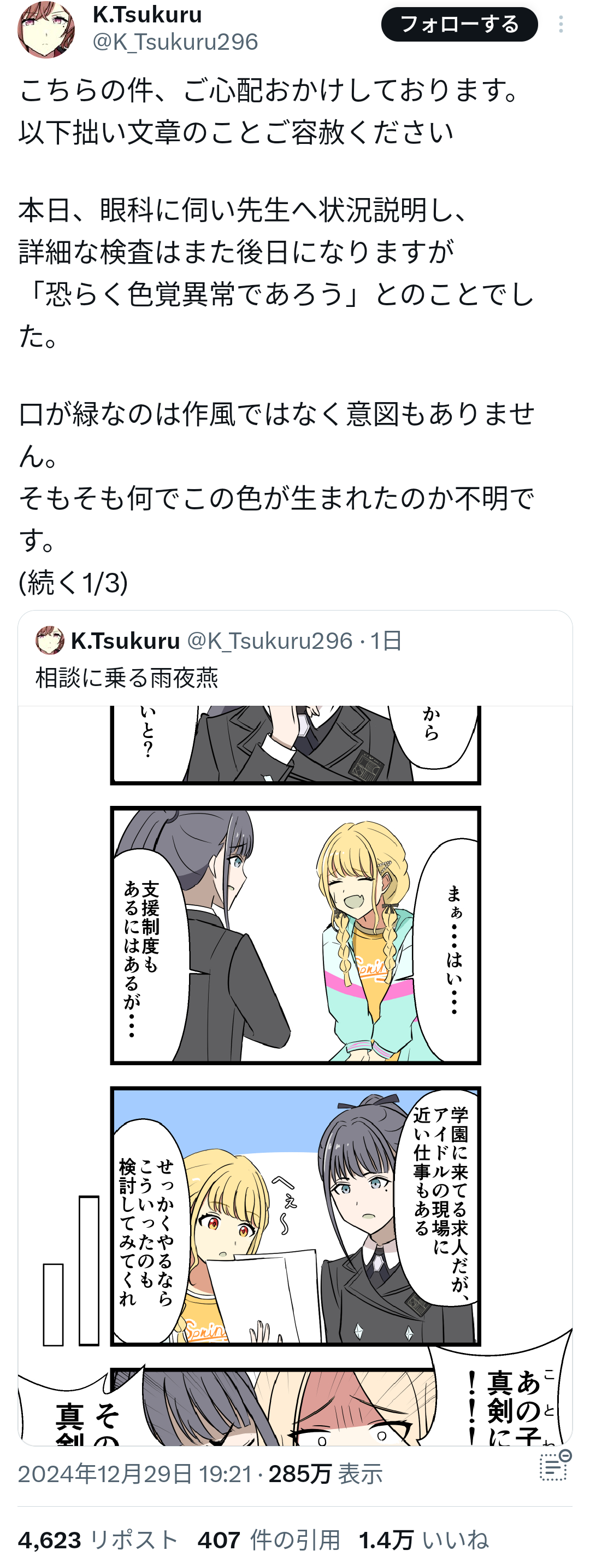 デッサンだか人の形だかくるってるよと指摘されてアンチだと思ってなにいってんだよみたいに言ってたら